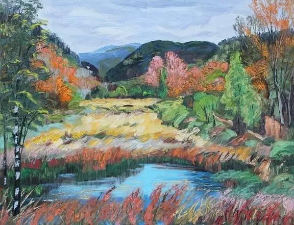 徐建新1985年畢業(yè)于西北師范大學(xué)美術(shù)系油畫專業(yè),1995年至1996年進修于清華大學(xué)美術(shù)學(xué)院,師從吳冠中、張汀、袁運甫、劉巨德等先生,系甘肅省美術(shù)家協(xié)會理事、慶陽市美術(shù)家協(xié)會副主席。在創(chuàng)作上,其作品多次入展全國、全省書畫展并獲獎;在教學(xué)上,多次獲得省市優(yōu)秀教學(xué)成果獎。先后出版有《徐建新素描》《徐建新線描》《徐建新油畫》《徐建新書法》《徐建新人物素描教法》等專著。他的這幅《北國風(fēng)光》創(chuàng)作于2016年6月,以慶陽華池南梁紅色革命根據(jù)地為創(chuàng)作背景,畫面氣勢磅礴,畫作色彩艷麗、層次清楚、透視感極強,充分展示了雄壯優(yōu)美的黃土高原和山川秀麗的南梁革命根據(jù)地。