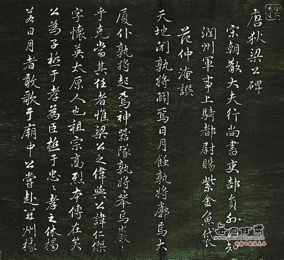 范仲淹撰寫的碑文分為四部分:第一部分贊揚了狄仁杰的不凡政績;第二部分從十五個方面列舉了狄仁杰的忠與孝的事實,并在每一二件事實后面進行了極簡短的評議;第三部分作了總結;第四部分為碑文的銘文。碑文開頭大氣磅礴,先聲奪人:“天地閉,孰將辟焉?日月蝕,孰將廓焉?大廈仆,孰將起焉?神器墜,孰將舉焉?”一連四個排比設問,高屋建瓴。接著他自問自答:“巖巖乎!克當其任者,惟梁公之偉歟。”在碑文中,范仲淹敘述了狄仁杰,不畏強權的高大形象,栩栩如生的刻畫出了這個被武則天譽為“豈朕之臣,社稷之臣也”的錚錚鐵骨。范仲淹在碑文中還連舉史上杰出人物與狄仁杰對比:“商有三仁,弗救其滅;漢有四皓,正于未奪。嗚呼!武暴如火,李寒如灰,何心不隨,何力可回!我公哀傷,拯天之亡,逆長風而孤鶱,訴大川以獨航。金可革,公不可革,孰為乎剛!地可動,公不可動,孰為乎方!一朝感通,群陰披攘。天子既臣而皇,天下既周而唐,七世發靈,萬年垂光。噫!非天下之至誠其孰能當!”整篇行文夾敘夾議,褒貶精到,使后人讀之油然而生敬意。