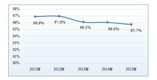 “十二五”期間通過工程教育專業認證的工科專業畢業生一次就業率變化情況