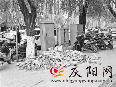 根據楊先生反映情況,記者前往現場進行了核實。記者看到,木板、塑料、石灰等裝修垃圾堆放在人行道上,有一部分還掉進了一旁的綠化樹樹坑內,落滿了白灰。隨后記者聯系了西峰區環衛局、西峰區城市管理行政執法局,相關部門將督促其盡快清理,還街面干凈。