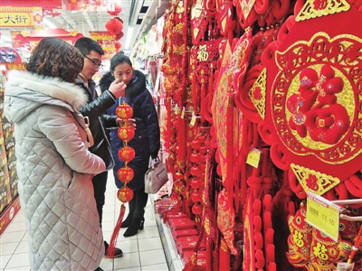 1月30日,記者在隴東商場的百貨日雜區看到,商家們懸掛出了多種型號的大紅燈籠,攤位上放置著年畫、窗花、中國結掛件、紅包袋等傳統民俗商品。臨近春節,這些商品非常受歡迎,前來采購的顧客絡繹不絕。隨后,記者來到天禾蔬菜批發市場,在市場門前有幾家店主在卸貨,貨車里裝載著充足的新鮮蔬菜。市場里人頭攢動,水產鮮肉、蔬菜瓜果的品種豐富,市民的消費熱情很高,商家的批發和零售情況都很不錯。