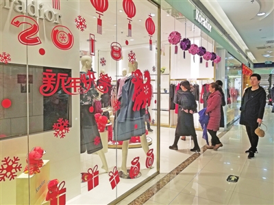 城區各大商場裝扮一新,推出了新春促銷活動。