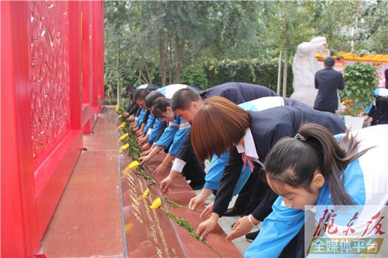 ??? 慶陽網訊(記者 呂赟 )9月30日,慶陽五中魂園落成典禮暨革命烈士紀念日活動舉行,上百名老師及學生通過獻花、演唱紅歌等形式,共同緬懷先烈。