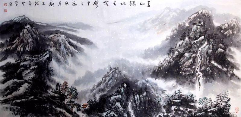 鳳賢兄的畫亦是造詣不淺,他最早是畫畫起家,中途擱淺,轉習書法,后又重新拿起畫筆。他的畫,主要以山水為主,于黃賓虹處用工尤甚,加之書法功夫過人,畫作每每以行草筆意寫之,全無一般畫家之匠氣。