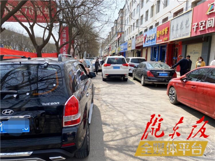 秦直東路市人民醫院住院三部旁,非機動車道上停滿了車輛