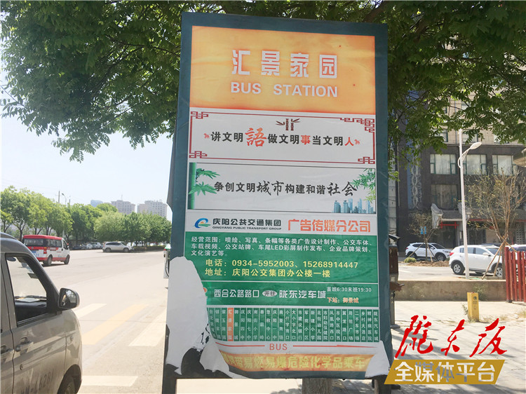 慶陽網訊(記者 路世玲)5月14日,家住西峰城區福景家園的張先生致電掌中慶陽新聞熱線0934—6660011反映,位于育才東路福景家園小區北門的銀隴嘉苑公交站點的公交線路圖被破壞嚴重,不經常乘坐該路公交車的市民無法辨認,影響乘車。