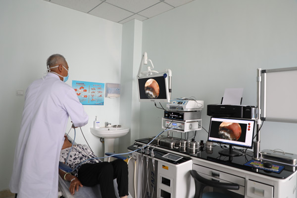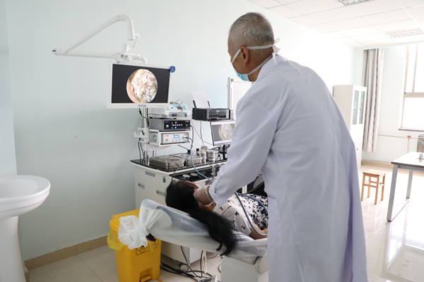 慶陽市第二人民醫院馮順治醫師為患者檢查耳內情況。本報見習記者李倩攝
