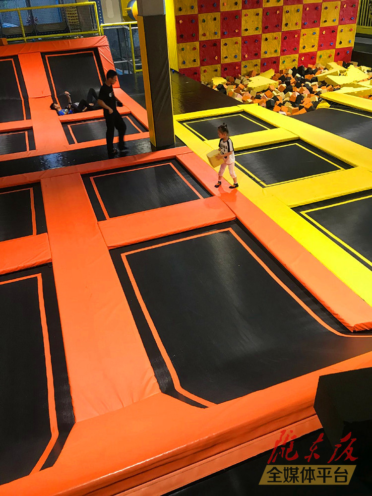 ????受到家長和孩子青睞的,不只有室外蹦床,還有室內蹦床。相比于室外蹦床,室內蹦床沒有安全繩束縛,似乎更受孩子們歡迎。記者在城區某蹦床俱樂部看到,幾個孩子在不同蹦床區域來回跳躍,甚至追逐、打鬧,有些孩子在蹦床上跳躍過程中,不慎摔倒,有些孩子還做起了跪彈、坐彈等有些難度的蹦床動作。但旁邊的工作人員對這些孩子的危險操作并未進行制止。在蹦床圍欄外陪護孩子的家長孫先生擔憂的說:“下落起跳幅度這么大,看得人心驚肉跳。”孫先生表示,這樣激烈的體驗項目讓他對孩子的安全時刻提心吊膽。