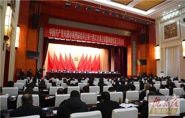 ????慶陽網訊(記者 張昶昶 杜斌偉)1月6日至7日,市委四屆十四次全會暨市委經濟工作會議召開。會議以習近平新時代中國特色社會主義思想為指導,全面貫徹黨的十九大和十九屆二中、三中、四中、五中全會精神,認真學習中央經濟工作會議精神,深入貫徹落實習近平總書記對甘肅重要講話和指示精神,全面落實省委十三屆十三次全會暨省委經濟工作會議的決策部署,總結了市委常委會工作,部署了今年全市經濟社會發展等工作,審議通過了市委常委會工作報告、《中共慶陽市委關于制定慶陽市國民經濟和社會發展第十四個五年規劃和二〇三五年遠景目標的建議》《中國共產黨慶陽市第四屆委員會第十四次全體會議決議》。