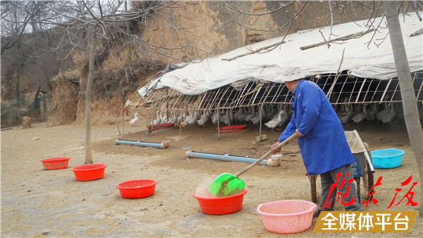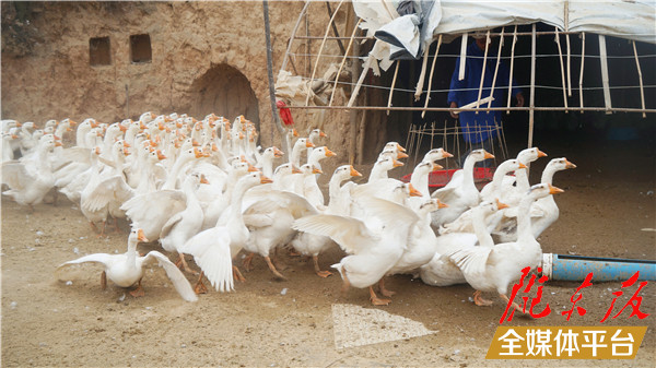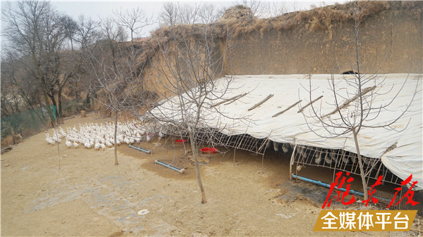2019年,在幫扶干部的鼓勵下,岳小紅蓋起占地200平方米的保溫棚,以一只14元的價格,從四川引進500只鵝苗,重新利用起家里廢棄的4個窯洞,開始發展大鵝養殖。