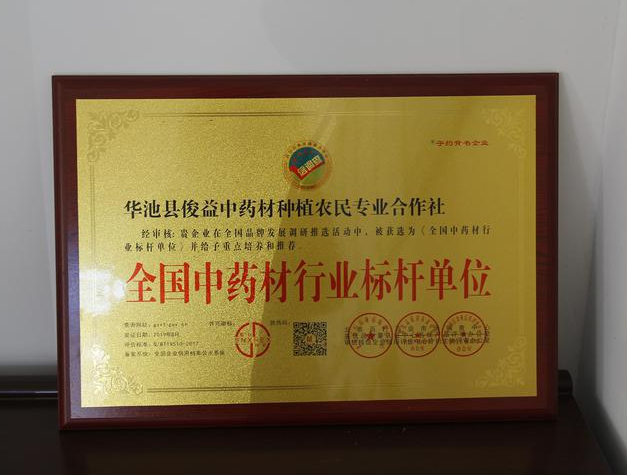 華池縣俊益中藥材種植農民專業合作社獲得“全國中藥材行業標桿單位”榮譽稱號
