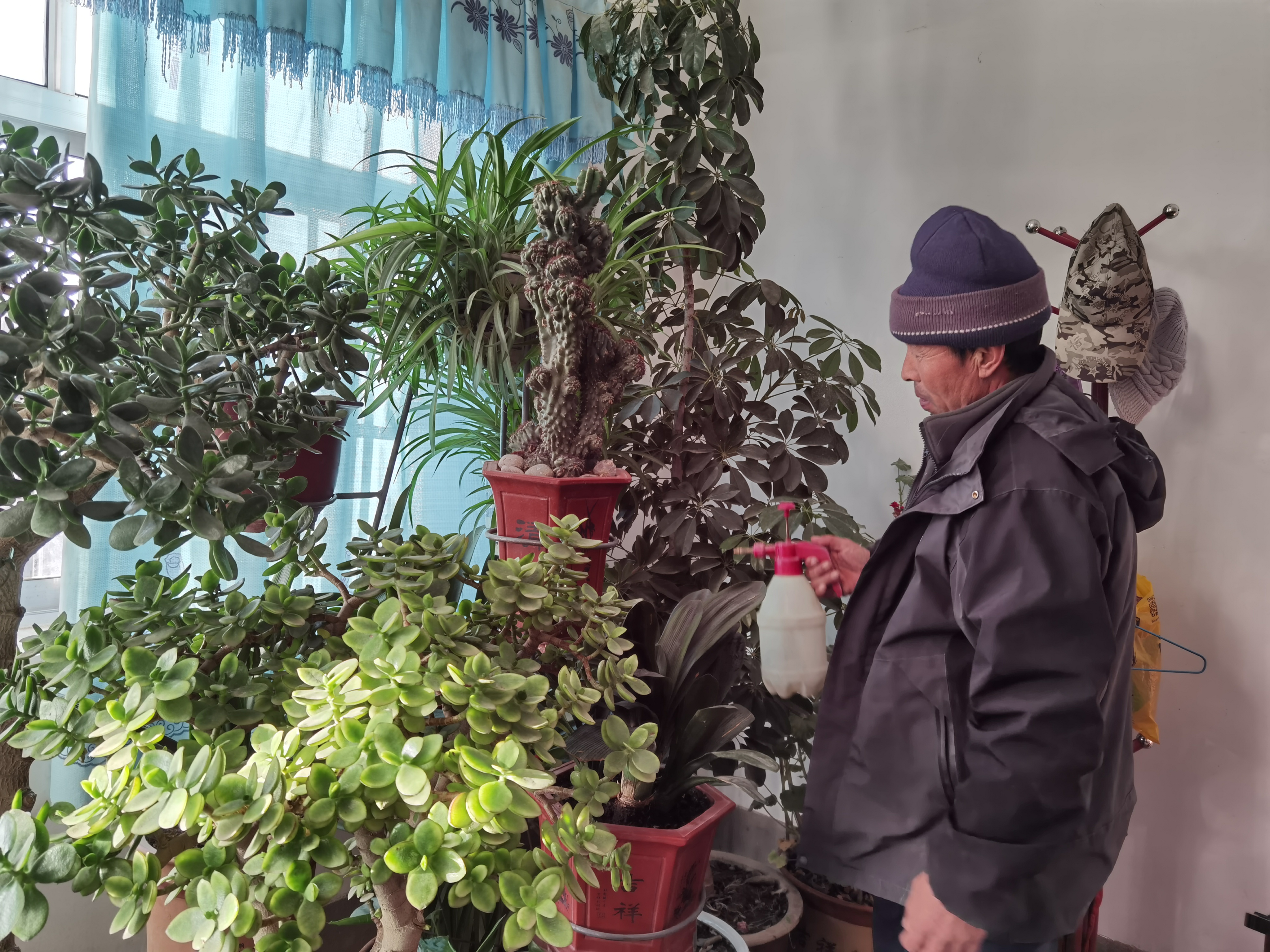 此外,他還打造了一處“秘密花園”,房間里擺放著數(shù)十盆花,1米多高的金錢樹(shù)、四季常青的鵝掌柴、剛出花苞的君子蘭、枝繁葉茂的吊籃、紅花點(diǎn)綴的繡球,一派生機(jī)勃勃。