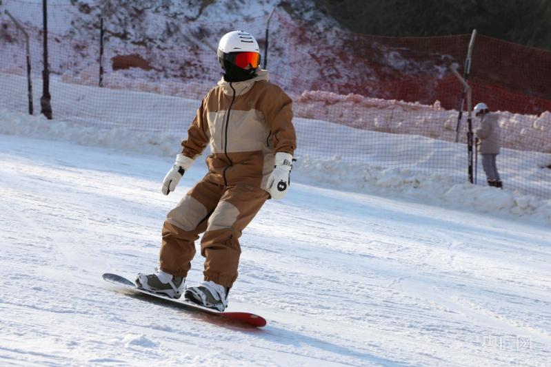 游客在慶陽市西峰區顯勝鄉毛寺村隴東冰雪基地滑雪(央廣網發 盤小美 攝)