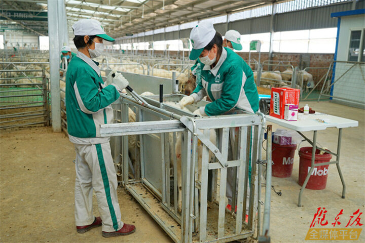 甘肅慶環肉羊制種有限公司工作人員給羊打疫苗。