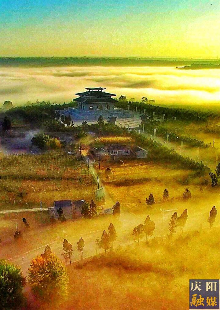 岐黃中醫(yī)藥文化博物館霧景。慶陽融媒特約攝影 王勇 攝