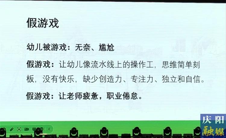 慶陽網訊 (慶陽融媒記者劉英娟)為進一步提升我市學前教育保教水平,科學實施幼小銜接,10月12日,市教育局邀請正高級教師、“安吉游戲”創始人、世界真游戲聯盟發起人程學琴,為我市教育工作者作《放手游戲 發現兒童》專題講座。