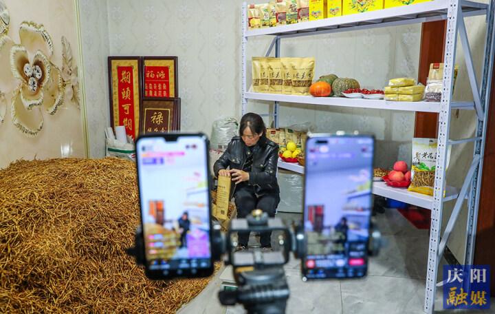 鎮原縣廟渠鎮文夏村村民通過網絡直播售賣自家農產品。