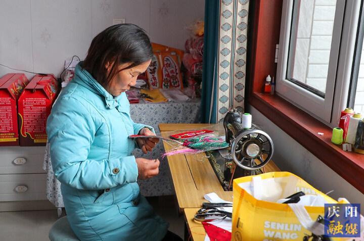 鎮原縣廟渠鎮文夏村村民在家中制作刺繡產品。