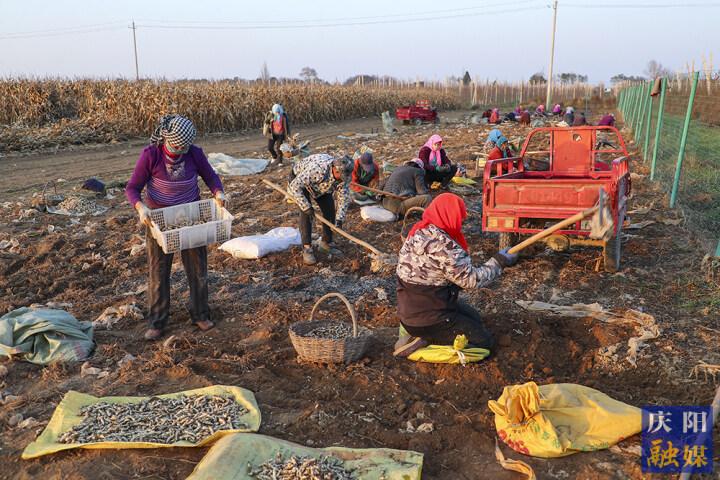 鎮原縣平泉鎮村民采挖螺旋菜。