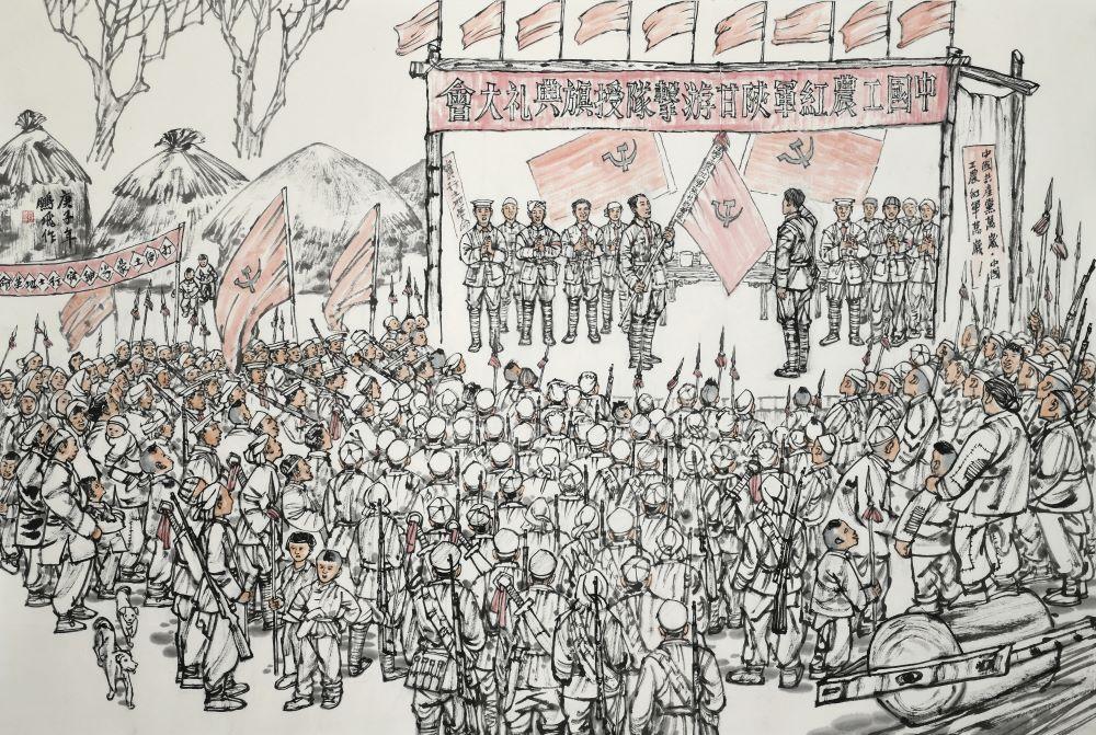 三嘉塬上舉紅旗。袁鵬飛 繪