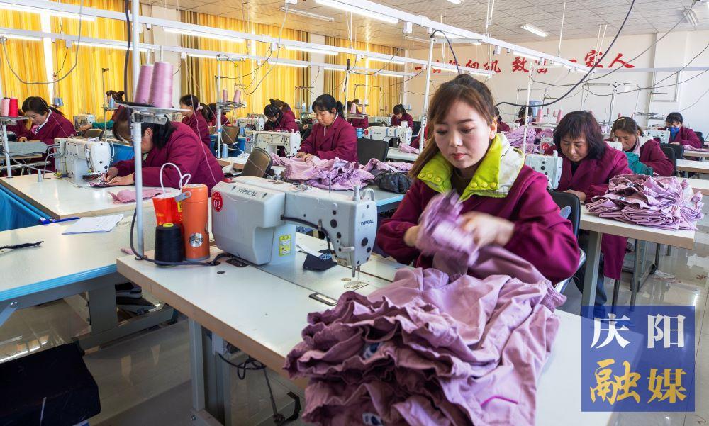 早勝鎮“啟夢”鄉村就業工廠工人在趕制服裝。 慶陽融媒記者 李卿 攝