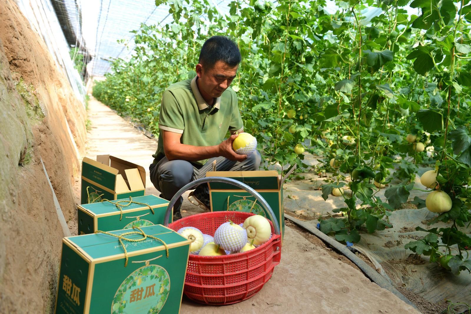 寧縣北川甜瓜種植戶王濤在采摘甜瓜。 慶陽融媒記者 李建強 攝