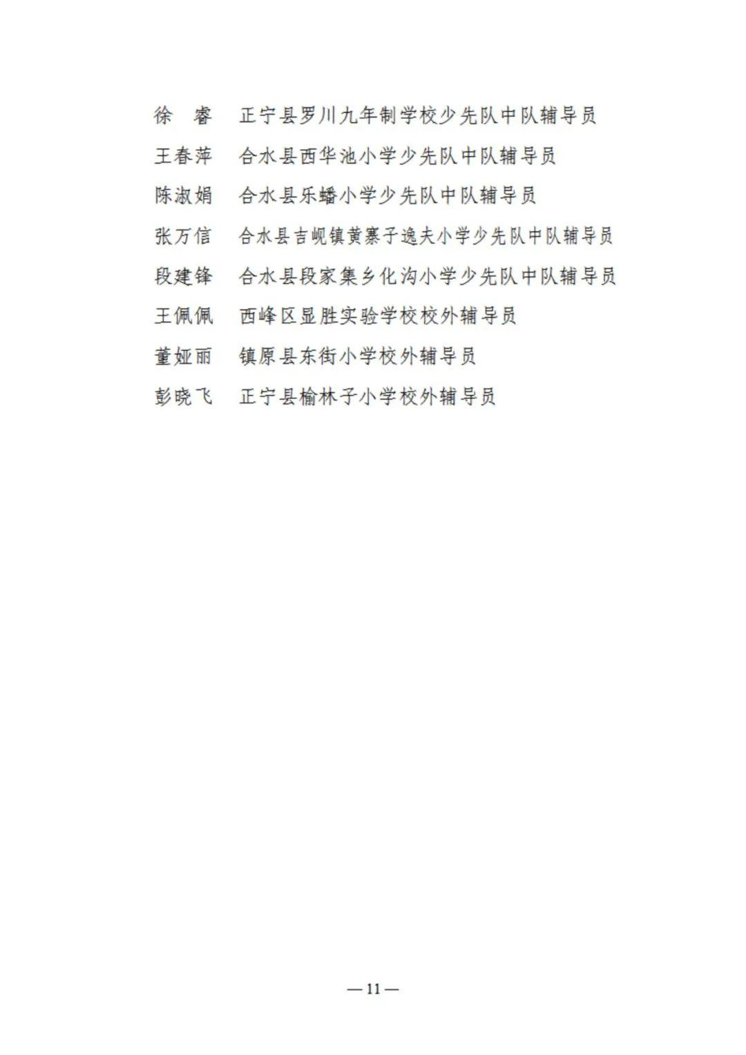 2024年度“慶陽市優秀少工委主任”擬表揚對象名單