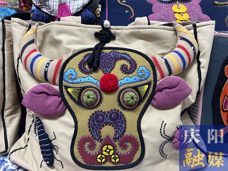 “這是五毒系列和十二生肖系列布藝包,是我們為今年香包節準備的新品,是在‘千歲香包’的基礎上,融合了剪紙、布貼畫、刺繡等多種非遺元素制作而成的,體現了慶陽本土文化。”趙星萍介紹。