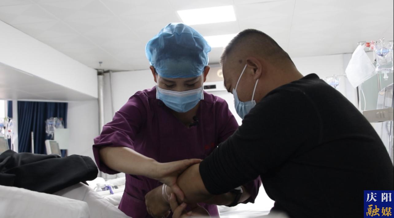 市人民醫院腎病科血液凈化者中心李濤濤正在接受血液透析治療。慶陽融媒記者 高健 攝