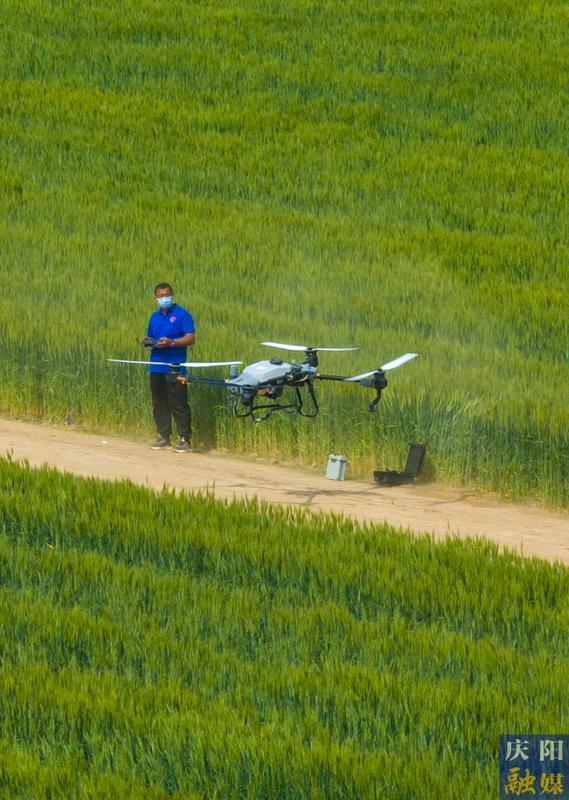 ▲5月20日,慶陽市農技中心組織開展冬小麥“一噴三防”作業演練。