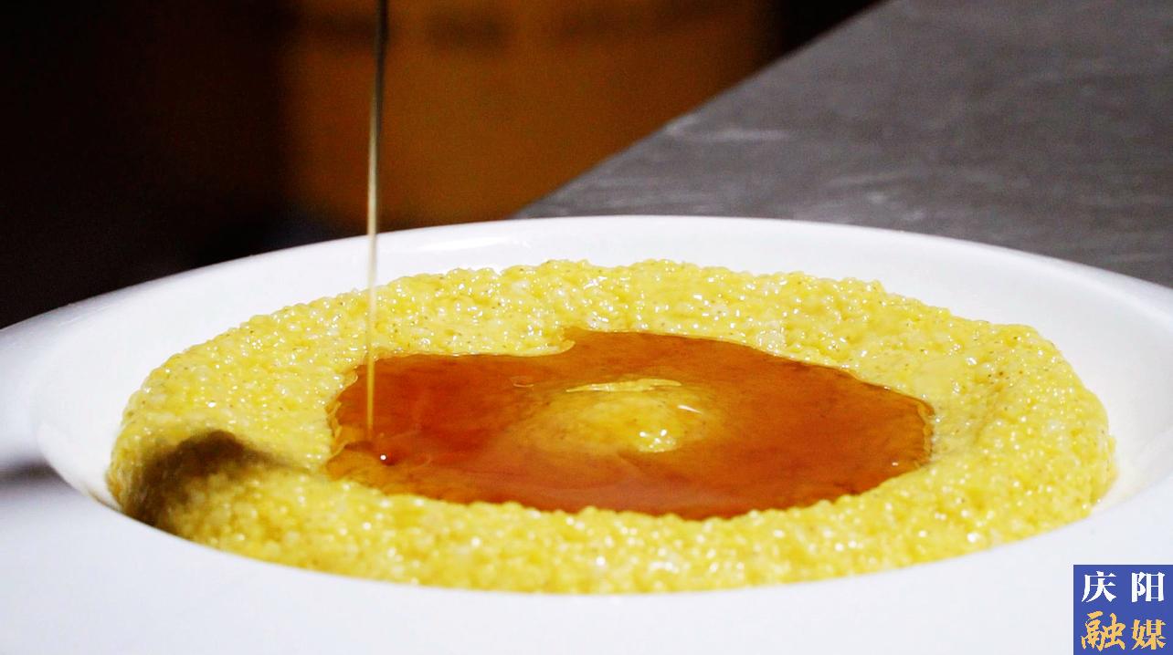慶陽的端午傳統美食——黏米飯,跟粽子有異曲同工之妙,又彌補了粽子不易消化的不足,對脾胃更加友好。黏米飯選用北方特有的大黃米,也叫“糜子”。糜子比小米顆粒大,黏糯程度比糯米有過之而無不及,做成黏米飯,金黃的顏色特別誘人。蒸好的黏米飯口感軟糯,容易消化,再淋上麥芽糖稀,畫龍點睛,口感更佳。