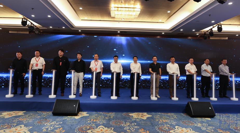 慶陽市委、市政府領導與數字經濟企業代表、特邀嘉賓等共同按下啟動柱。慶陽融媒記者 陳飛攝
