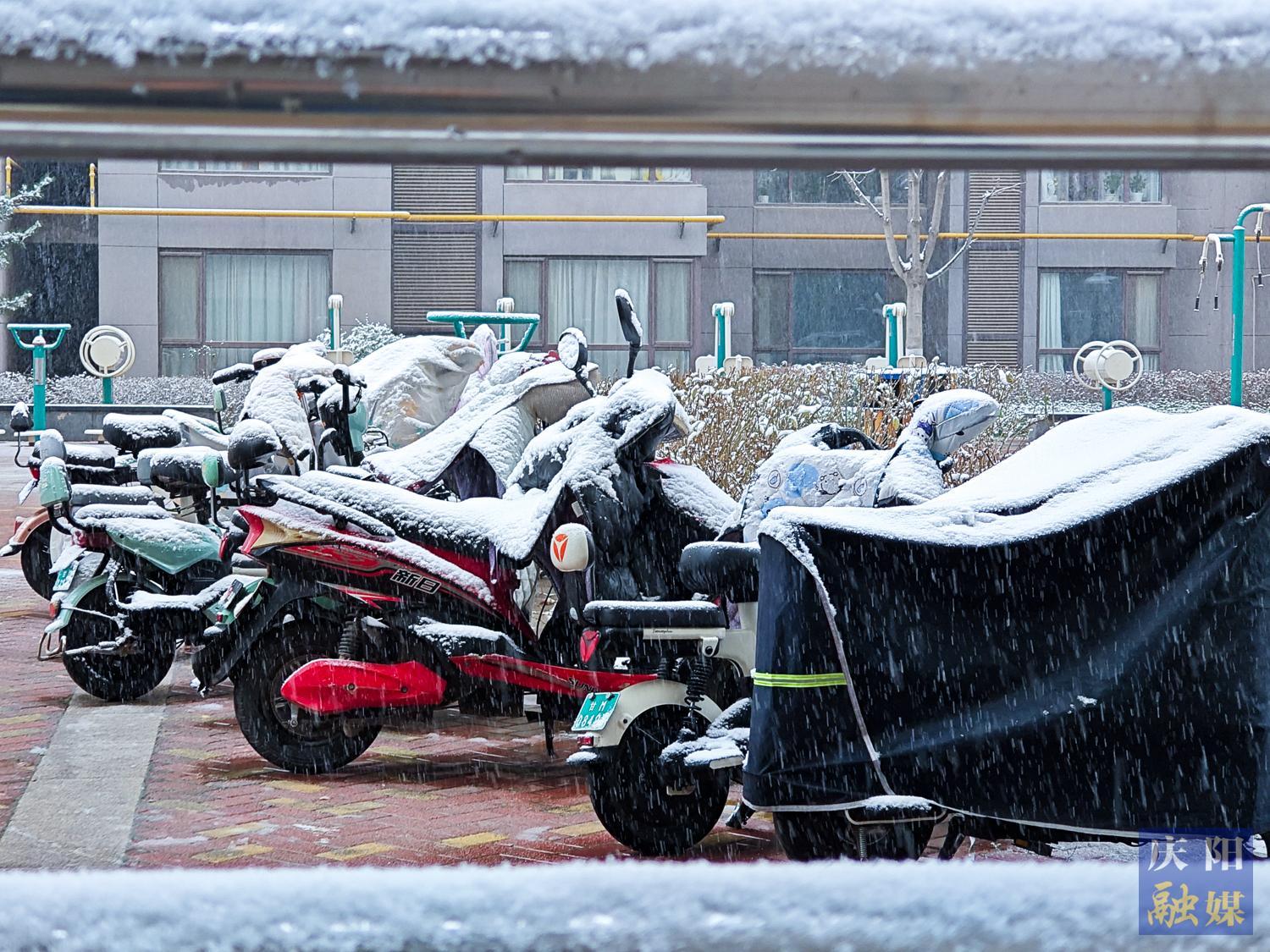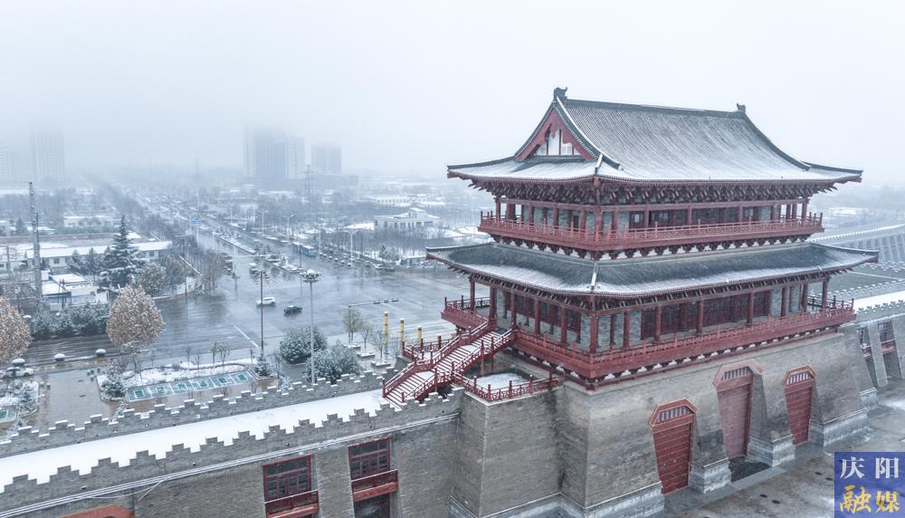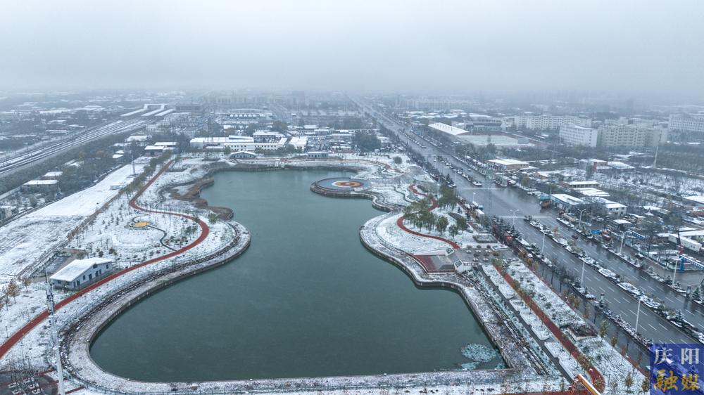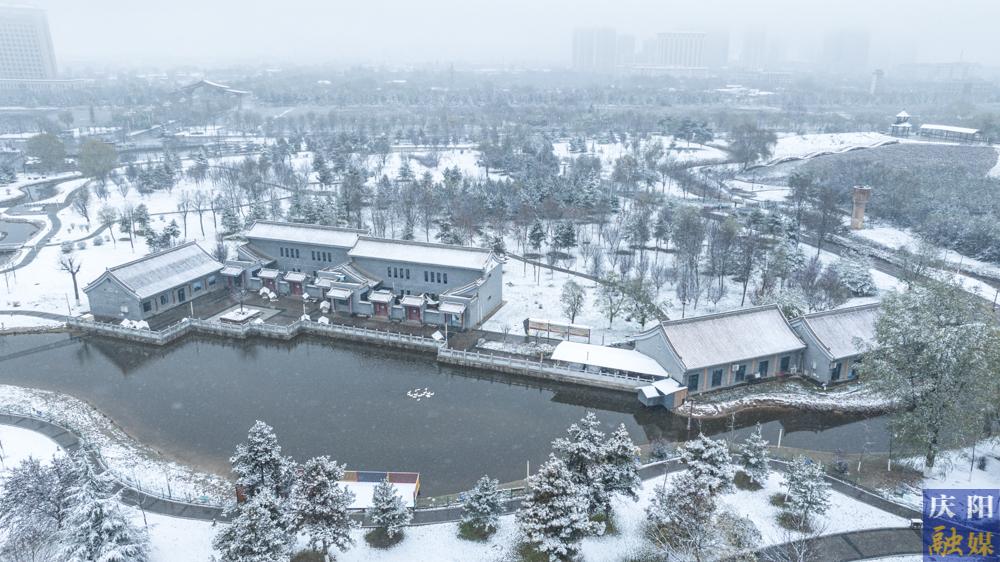 雪中的西峰區(qū)岐黃大道。