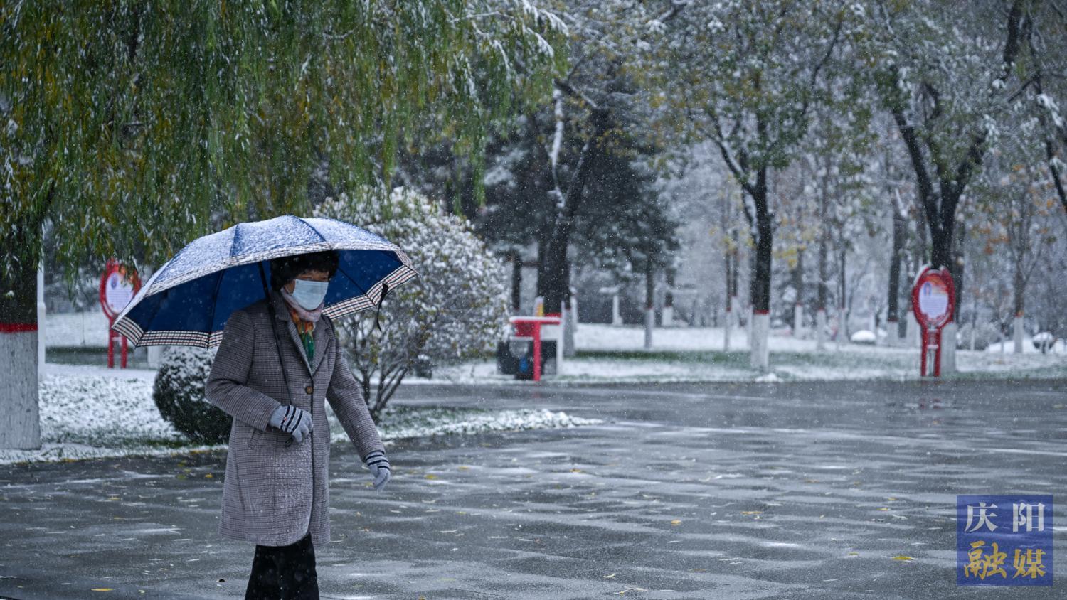 慶陽網(wǎng)訊(慶陽融媒記者 俄少飛 陳飛)受冷空氣影響,11月18日,慶陽迎來立冬后首場降雪,西峰城區(qū)雪花飛舞,市民冒雪前行。