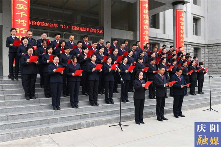 慶陽(yáng)網(wǎng)訊(慶陽(yáng)融媒記者 閆偉)12月4日,在第十一個(gè)國(guó)家憲法日,慶陽(yáng)市檢察院舉行憲法宣誓儀式。市檢察院黨組書(shū)記、檢察長(zhǎng)周永祥領(lǐng)誓,全體干警宣誓。儀式上,全體宣誓人員列隊(duì)整齊,面向國(guó)旗,心承憲法之重,字字鏗鏘宣讀了誓詞,并集體誦讀《中華人民共和國(guó)憲法》,表達(dá)了對(duì)憲法的尊崇及維護(hù)憲法權(quán)威、捍衛(wèi)憲法尊嚴(yán)的決心。