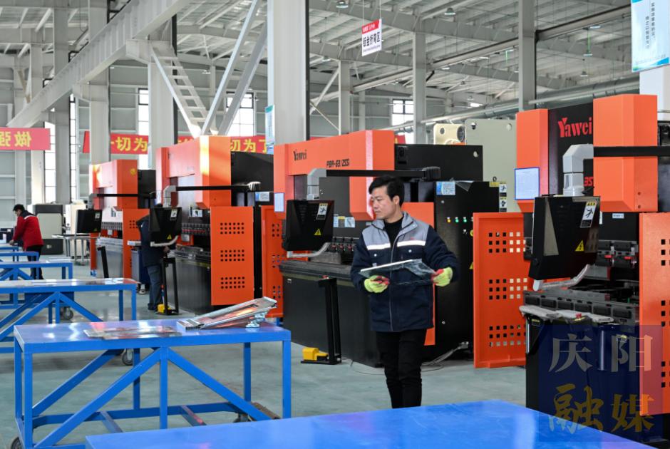 ▲工人在使用設備沖壓折彎機箱鈑金配件。慶陽融媒記者 俄少飛 攝