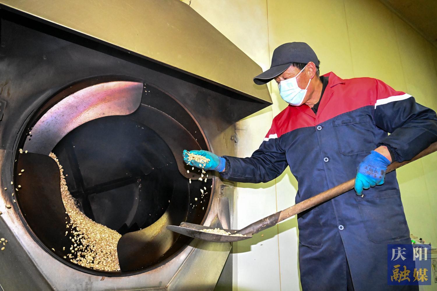 寧縣康盛源藥業有限責任公司,工人在烘烤中藥材。