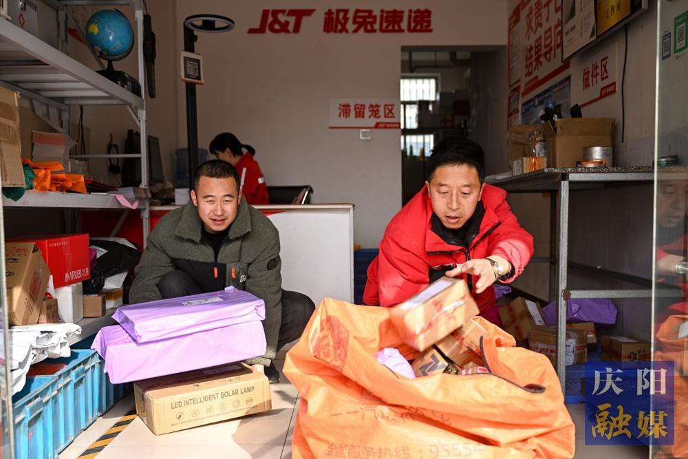 西峰區(qū)西大街一處快遞驛站內(nèi),工作人員忙著收發(fā)快遞。