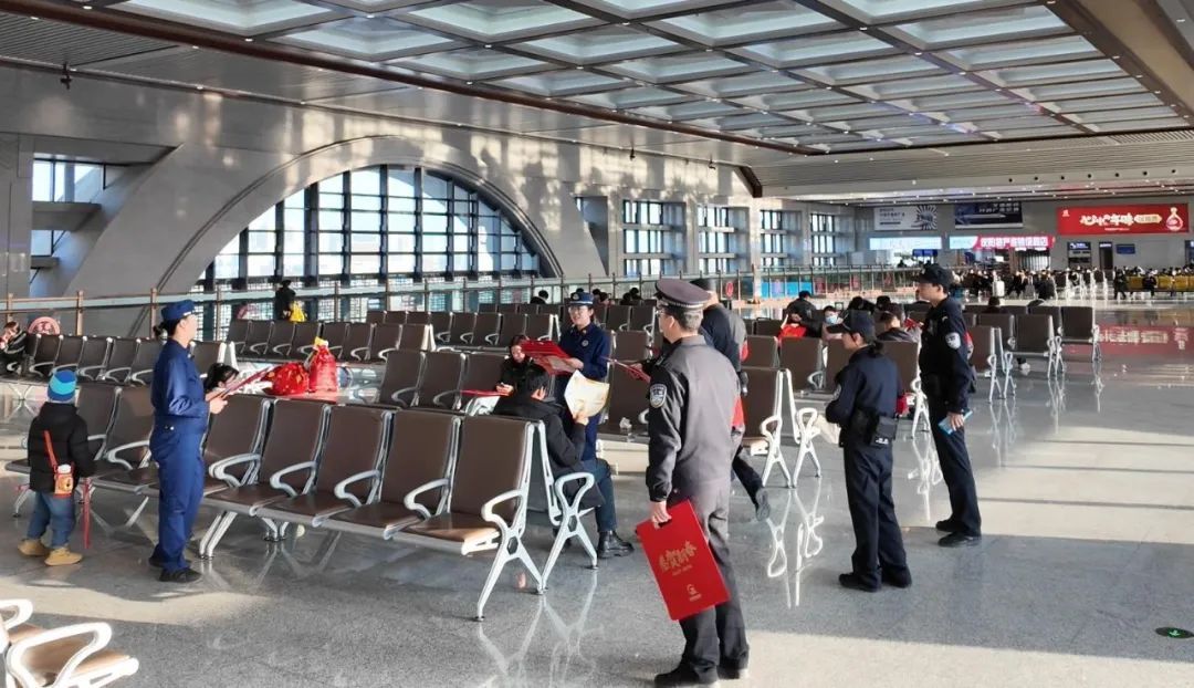 另一邊,在候車大廳,支隊(duì)宣傳人員與高鐵站工作人員、車站派出所民警一道,一邊給返鄉(xiāng)旅客進(jìn)行消防安全知識(shí)宣講、贈(zèng)送年味兒十足的“新春消防安全大禮包,”一邊協(xié)助車站查找安全隱患,一場(chǎng)以“溫暖回家路、消防伴我行”為主題的春運(yùn)消防宣傳活動(dòng)拉開(kāi)帷幕。為進(jìn)一步提升高鐵站消防安全監(jiān)管水平,宣傳人員還組織高鐵站工作人員、派出所民警開(kāi)展了消防安全知識(shí)培訓(xùn),以身邊案例教育身邊人,以“講解+實(shí)操+演示”的方式切實(shí)增強(qiáng)工作人員的消防安全素質(zhì)。
