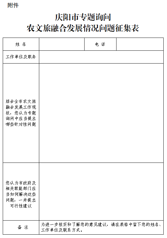 附件:《慶陽市專題詢問農文旅融合發展情況問題征集表》