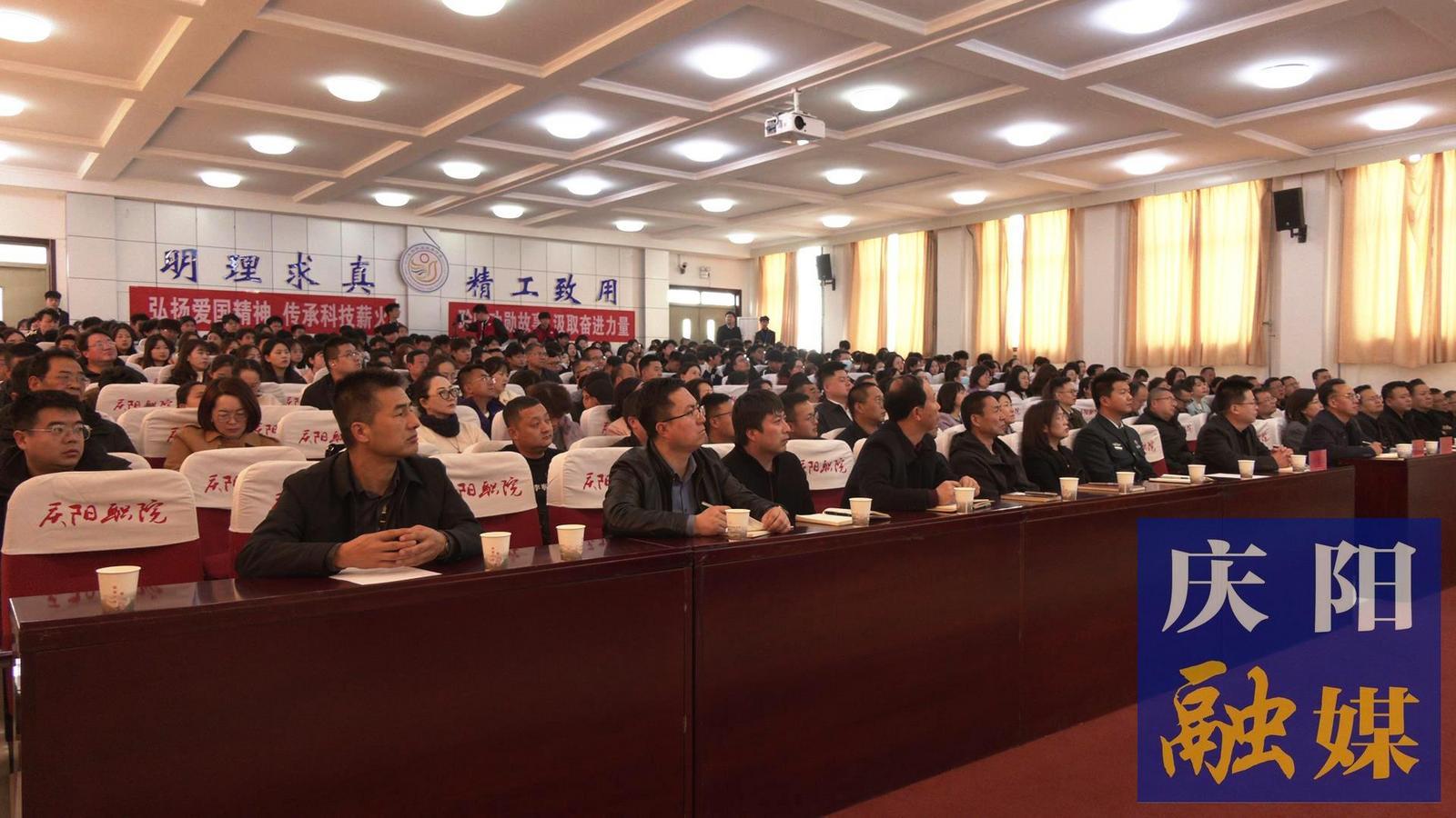 彭潔教授以《彭士祿的故事》為題,通過詳實的史料、生動的案例和珍貴的影像資料,系統回顧了她的父親——中國核動力事業的開拓者與奠基人彭士祿院士的生平事跡。慶陽職業技術學院師生代表530余人聆聽了宣講。