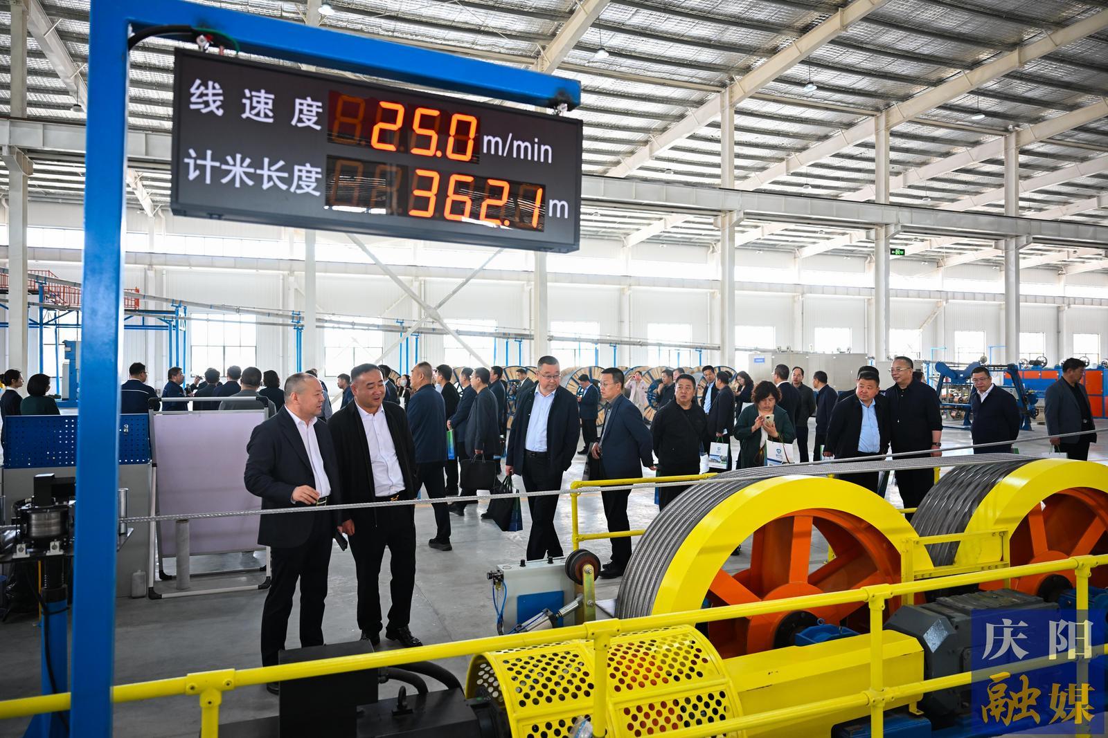 活動(dòng)現(xiàn)場(chǎng)彩旗招展、氣氛熱烈,市直相關(guān)部門(mén)及中省駐慶單位、企業(yè)家代表等160余人參加活動(dòng)。慶陽(yáng)超芯電線電纜有限公司、天津戈?duì)栯娞荩☉c陽(yáng))有限公司負(fù)責(zé)人介紹了公司及產(chǎn)品情況,客戶代表分享了產(chǎn)品應(yīng)用案例。隨后,舉行了產(chǎn)品下線發(fā)運(yùn)儀式,參加活動(dòng)人員集體觀摩了企業(yè)產(chǎn)品展廳及智能化生產(chǎn)車間。