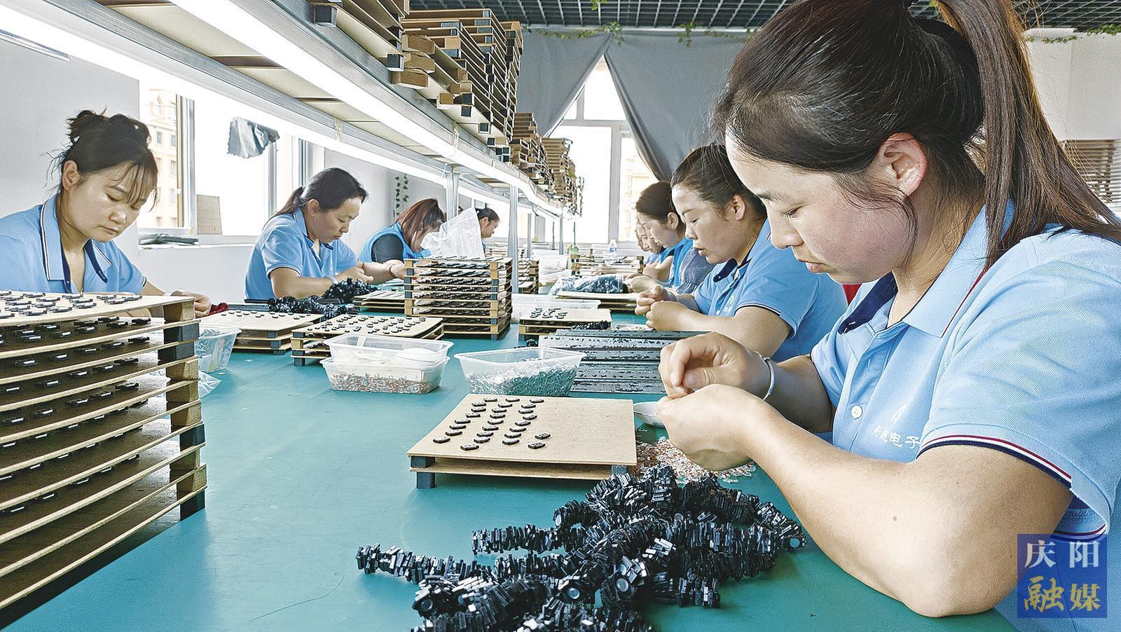 據慶陽彤越電子有限公司總經理李志文介紹,公司成立于2023年3月,目前解決就業58人,帶動脫貧戶就業15戶,年產值280萬元左右,產品主要銷往廣東、江蘇等地的大型工廠。