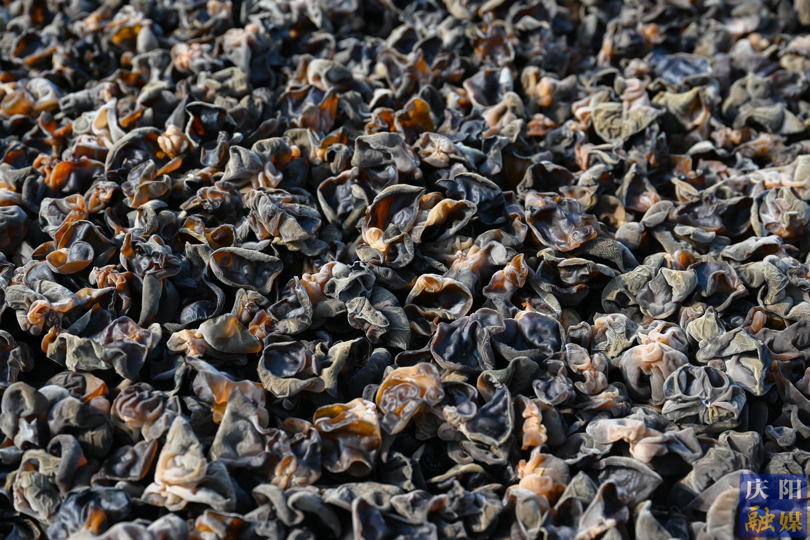 種植戶晾曬黑木耳。