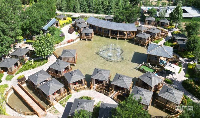 俯瞰西峰區李嶺村李小嶺水上火鍋店(央廣網發 盤小美 攝)