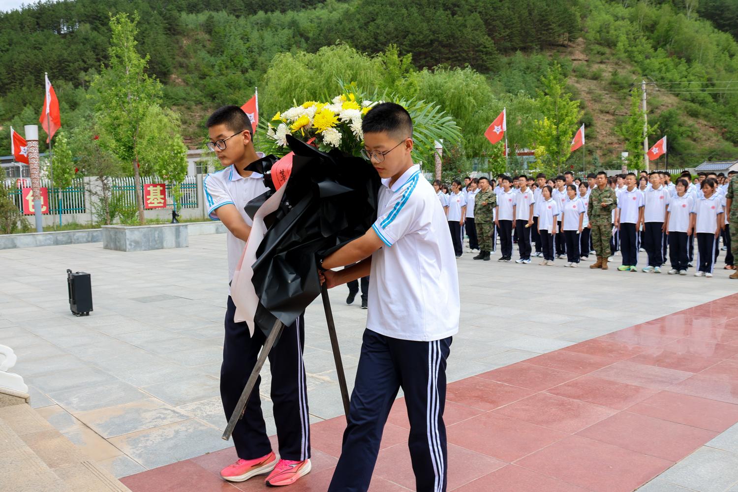 學生代表向合水縣太白鎮太白起義紀念碑敬獻花籃。