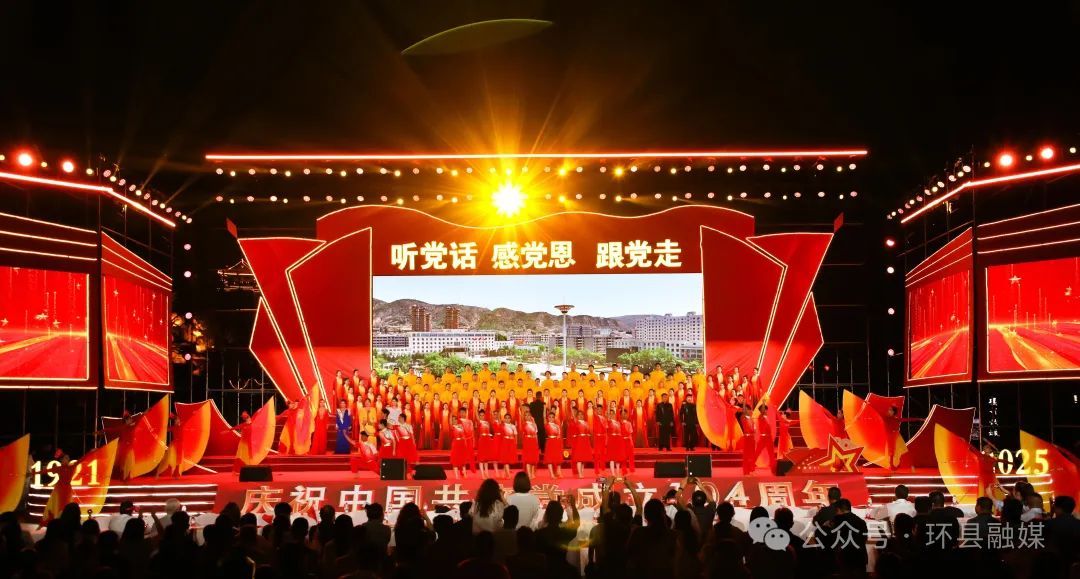 “沒有共產(chǎn)黨就沒有新中國,共產(chǎn)黨辛勞為人民……”隨著《沒有共產(chǎn)黨就沒有新中國》熟悉的旋律響起,“憶崢嶸 唱初心旋律”篇章緩緩展開。來自黨群、農(nóng)口、政法等十個系統(tǒng)的近千名演唱者,身著整齊服裝,精神抖擻地列成恢弘方陣。他們是環(huán)縣各條戰(zhàn)線的奮斗者代表,此刻齊聲發(fā)出時代的最強音,聲浪匯聚成震撼人心的紅色洪流。