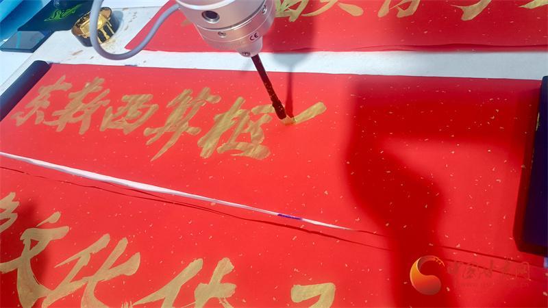 讓機械臂寫一幅對聯(lián)吧!輸入相關(guān)數(shù)據(jù),機械臂拿起毛筆寫下“東數(shù)西算樞紐中心”,讓慶陽“中國算谷”的雄心壯志躍然紙上。