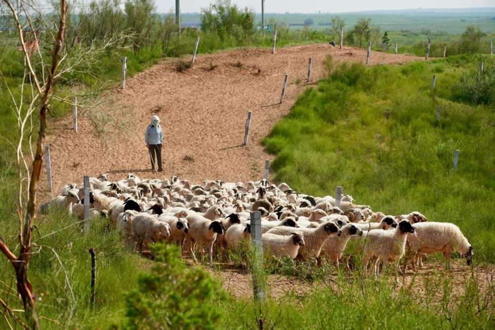 生態(tài)牧場里,灘羊“吃著中草藥,喝著弱堿水”,寧夏鹽池灘羊產(chǎn)業(yè)發(fā)展集團有限公司以高于市場價10%的價格收購灘羊,帶動養(yǎng)殖戶穩(wěn)定增收。從羊肉分割到毛皮制作,從主題民宿到副產(chǎn)品開發(fā),灘羊已形成完整產(chǎn)業(yè)鏈,是當?shù)馗幻駨娍h的重要抓手。