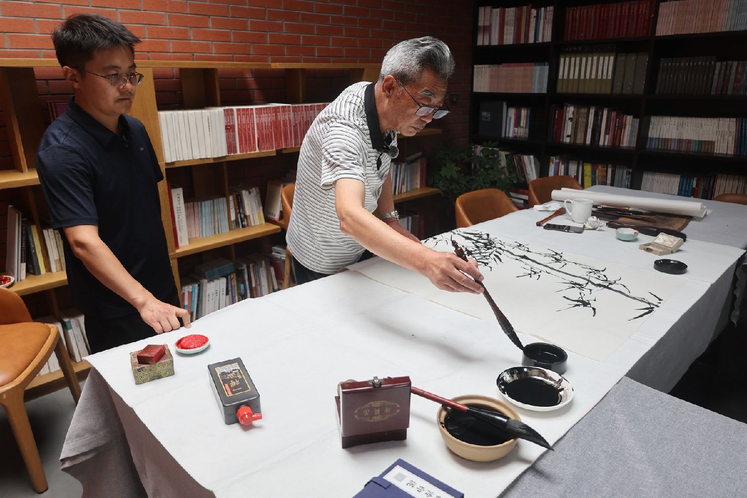 他還多次受邀前往臺灣交流,還曾在島內舉辦書畫展。“臺灣的朋友特別喜歡竹子”,他回憶,臺灣人對竹有一種近乎本能的親近,那份對節節向上、虛心有節之物的偏愛,仿佛是一種性情的投射,也是一脈文化血脈的回響。